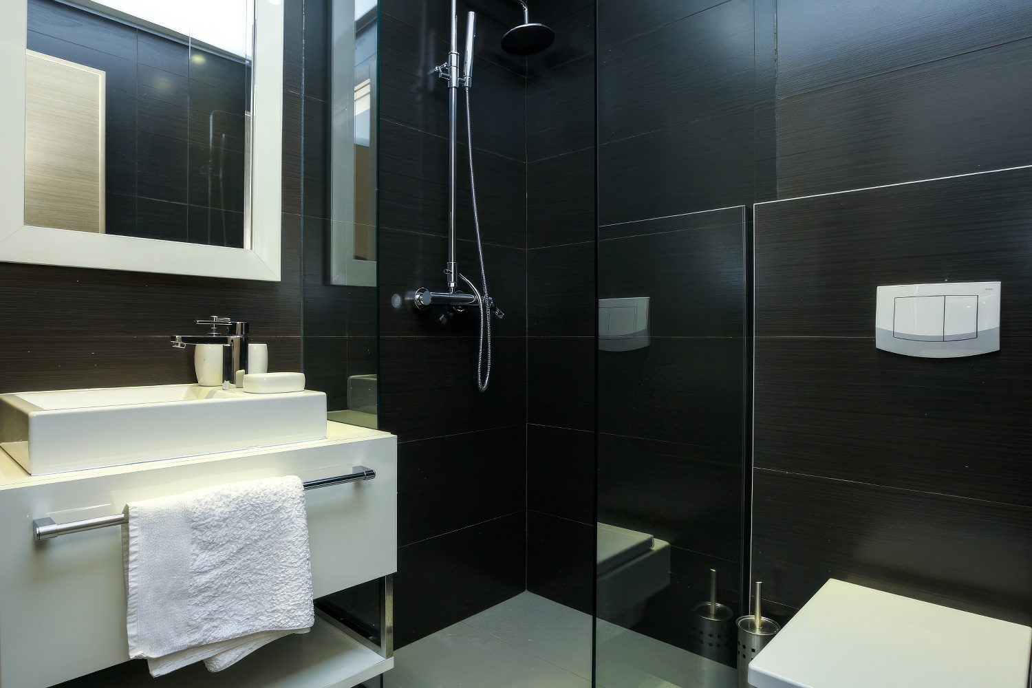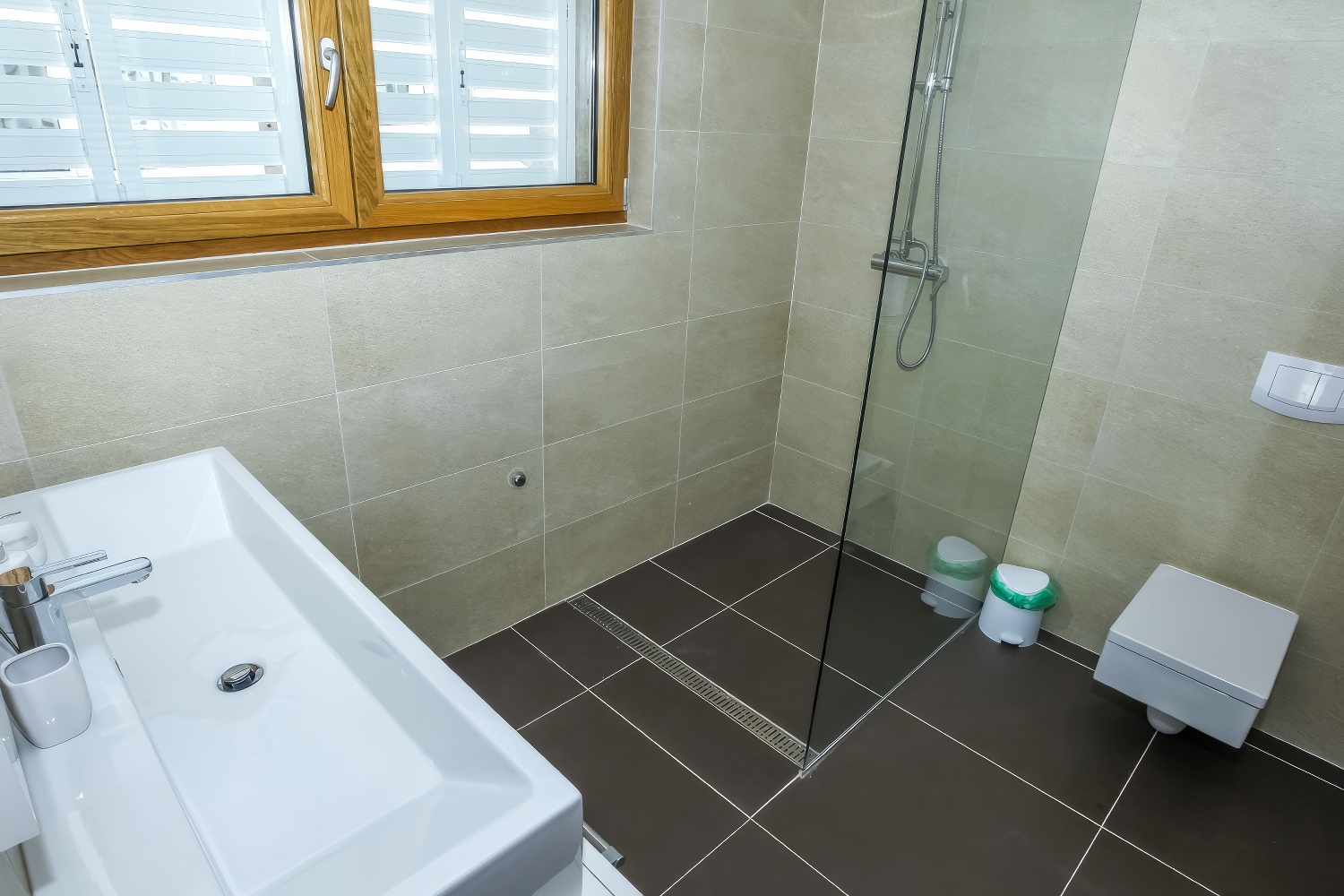 - Dusche, WC und Waschbecken