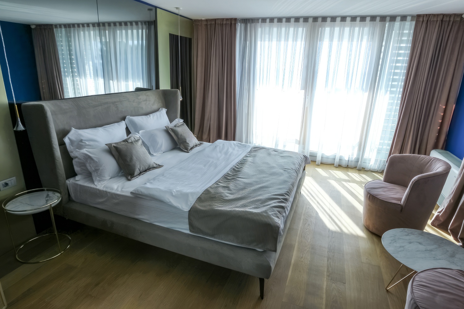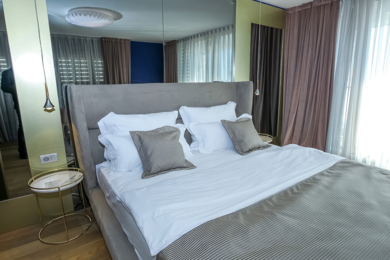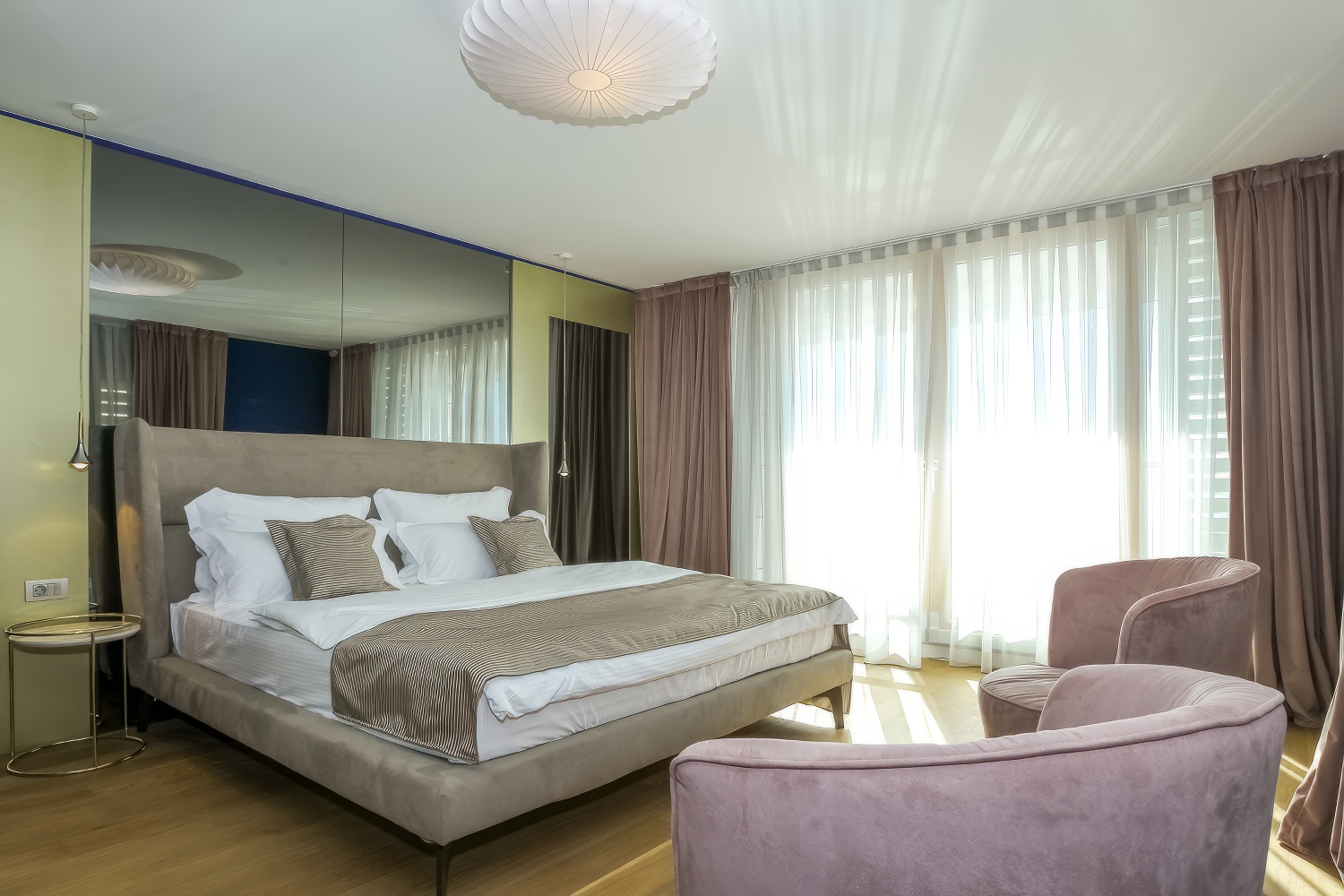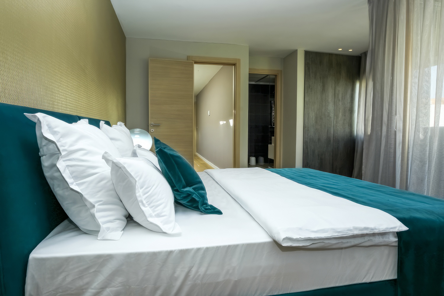 Im Obergeschoss erwarten dich zwei komfortable Schlafzimmer mit Doppelbetten, jeweils mit eigenem Bad und Loggia.